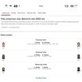 Brady threw three touchdown passes and ran for a score as the Patriots thoroughly embarrassed the Jets with a 35-point second quarter in a 49-19 victory on Thanksgiving of 2012. New England scored four touchdowns in just more than 6 minutes -- including three in a jaw-dropping 52-second span -- helping Belichick become the eighth coach in NFL history with 200 career victories, including the playoffs. Brady finished 18 of 28 for 323 yards before leaving with 2 minutes left in the game. He reached 3,000 yards passing for the 10th time, becoming one of six players to accomplish the feat. He also passed Dan Fouts for 10th place on the career passing list.
