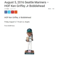 Mike Trout HR #159 GRIFFEY HOF BOBBLEHEAD 2016 Mariners Angels 8/5 Full Ticket
